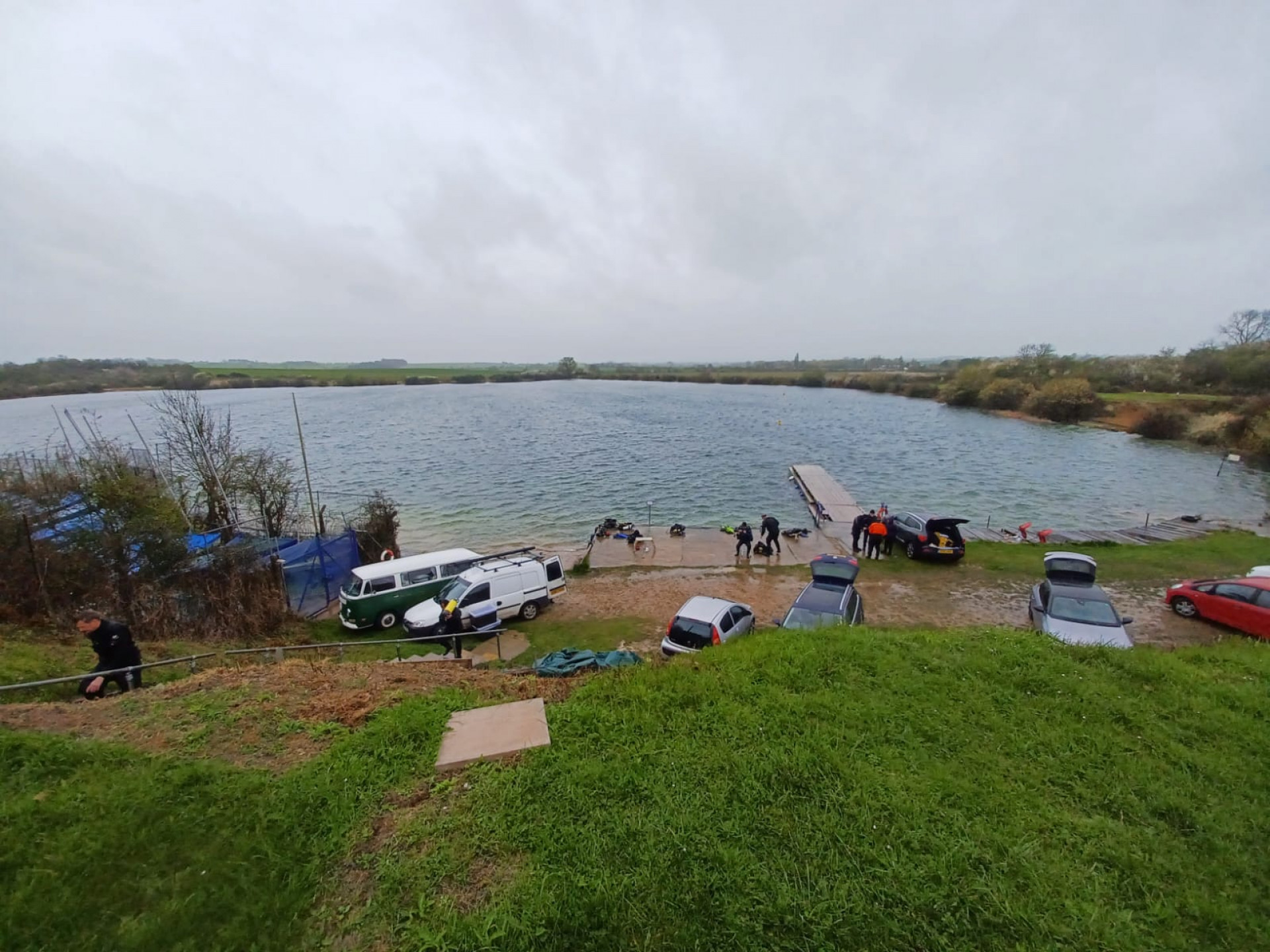 We had a great turnout, 16 members from Mid Herts Divers plus 3 surface support crew turned out to brave the wind & rain. Different reasons for going in, some to get ready for diving in Cyprus later in the week, some to have a fresh water rinse-off following 3 days diving off Plymouth, some to find kit that they'd lost previously in Arlesey!