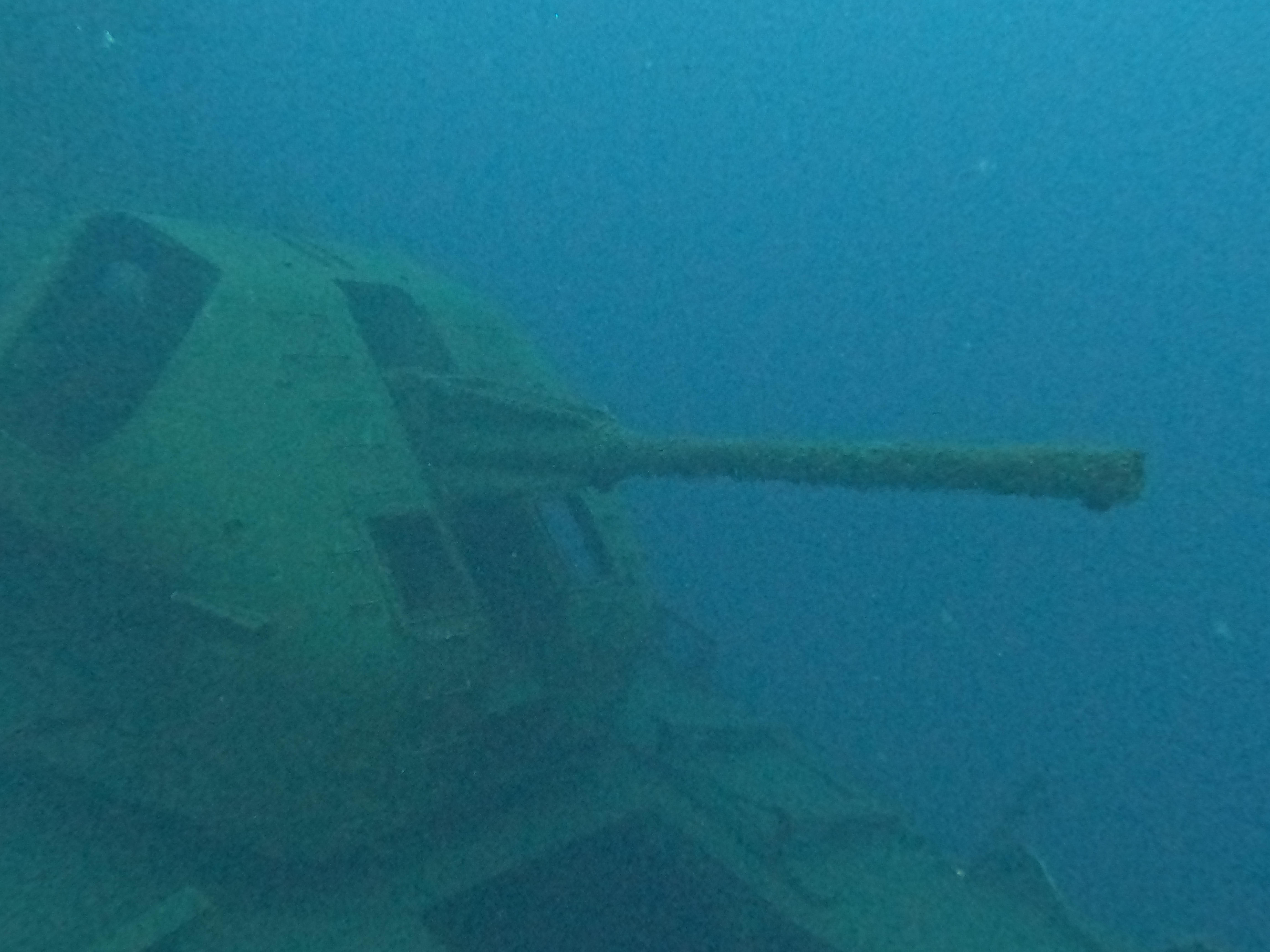 The next day, was the site I’d been most looking forward to – diving the impressive Corvetta Afonso Cerqueira wreck – an 85m long upright frigate wreck carefully prepared and sunk in 2018, so still really fresh and intact. Situated at a max depth of about 30m, it’s well within single tank recreational diving, and after we descended we were taken on a full stern to bow interior tour including the engine room. This was a unique experience for me, as I’d only dived fairly small wrecks and had minor swim-throughs until today. We stayed at the site for our second dive and split into two groups, one for a swim-through and one for the exterior. Two of the outside group managed to see a ray soaring past as well.