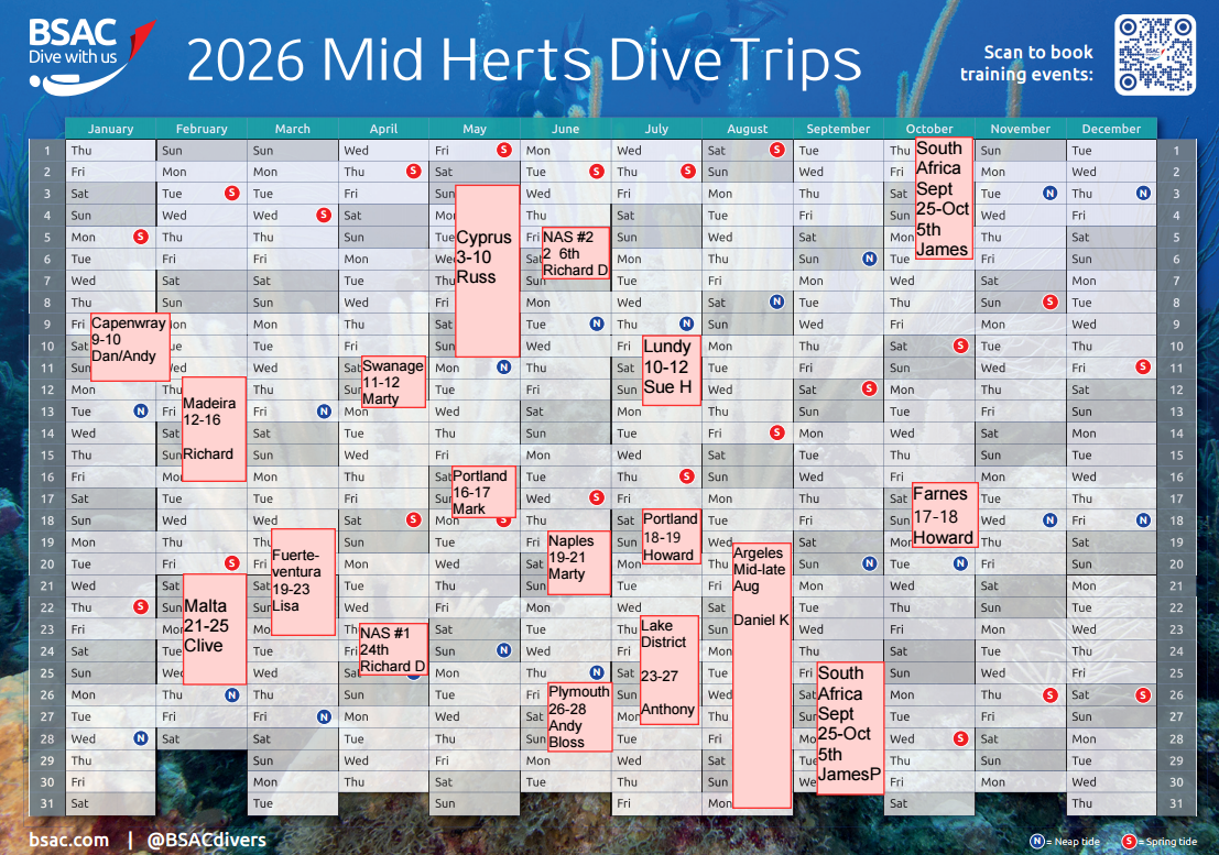Our Club Night is every Wednesday, with a Zoom call for all members at 7.30pm, for a catch up on recent and upcoming diving.